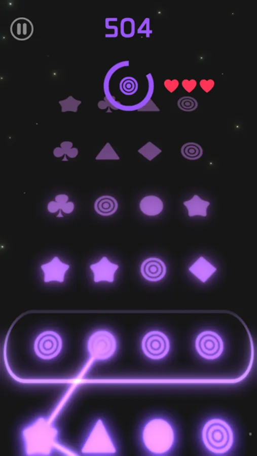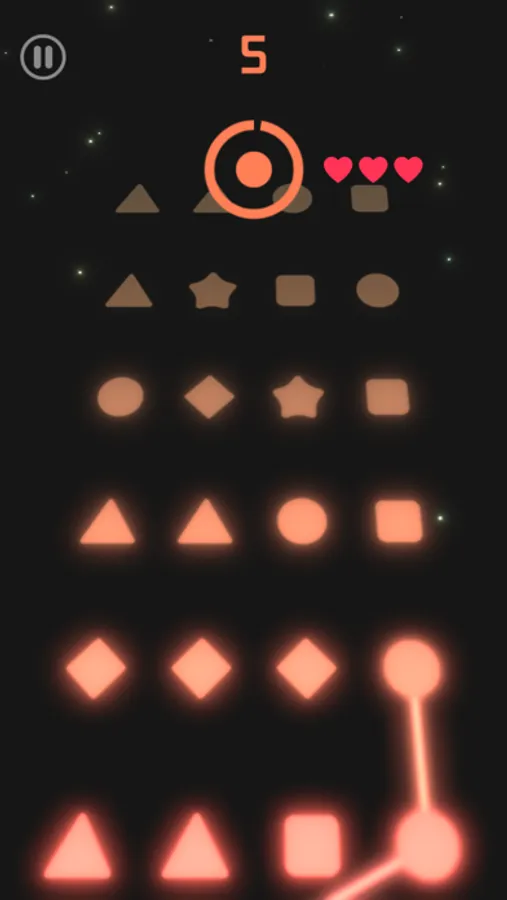 If you don’t manage to tap the next shape before the time ends also makes you lose a heart.