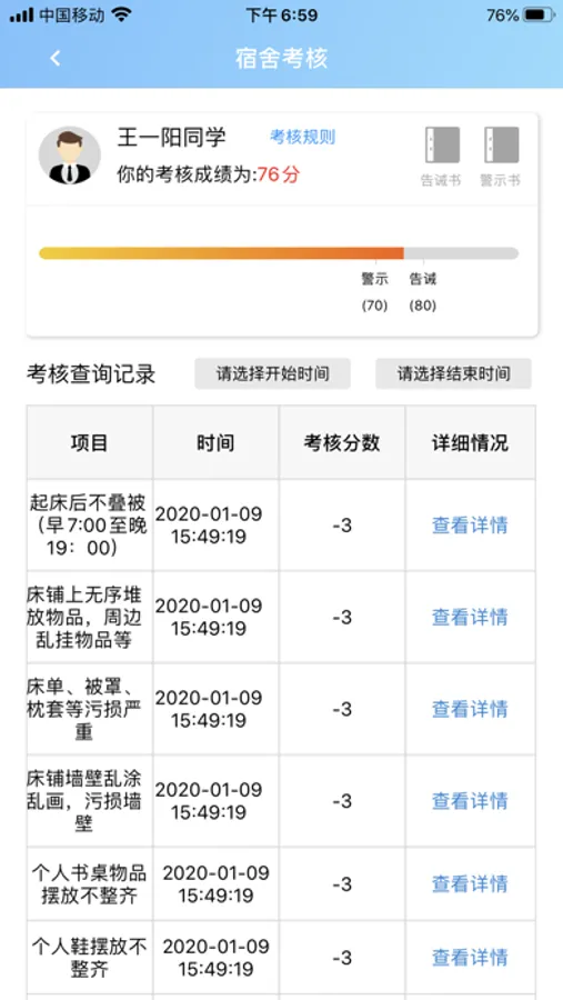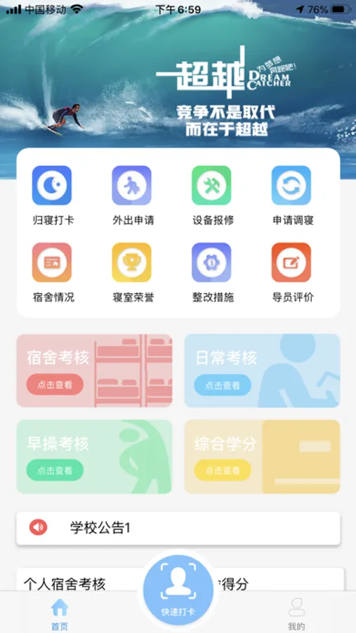 切实解决“学生综合素质量化考核管理”工作,涵盖了学生行为量化考核、公寓管理量化考核、学生早操管理等模块,以及活动性课程成绩录入、自动生成学生综合素质学分成绩单、学生日常奖惩记录等功能,全面客观地评价学生的综合素质和日常行为规范。
