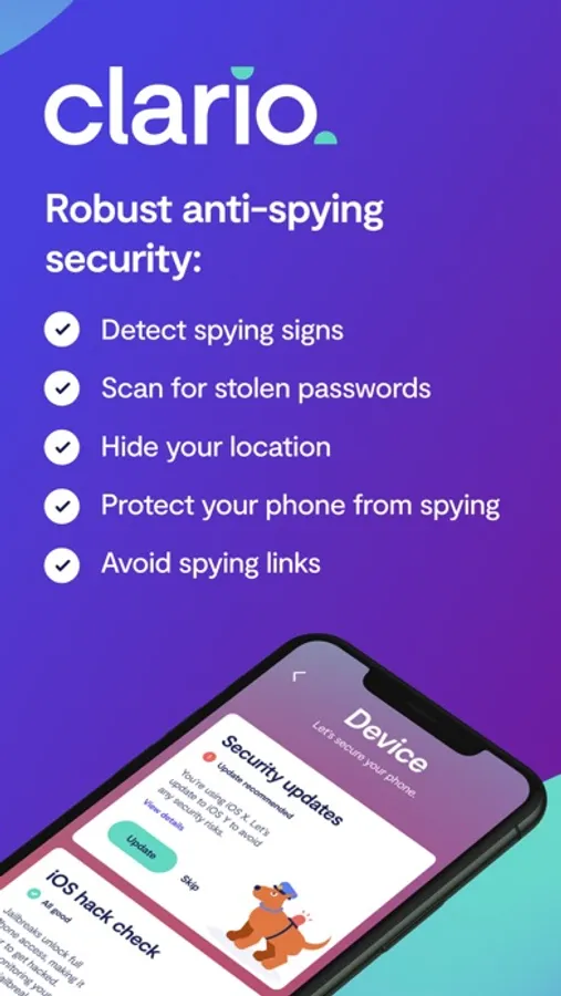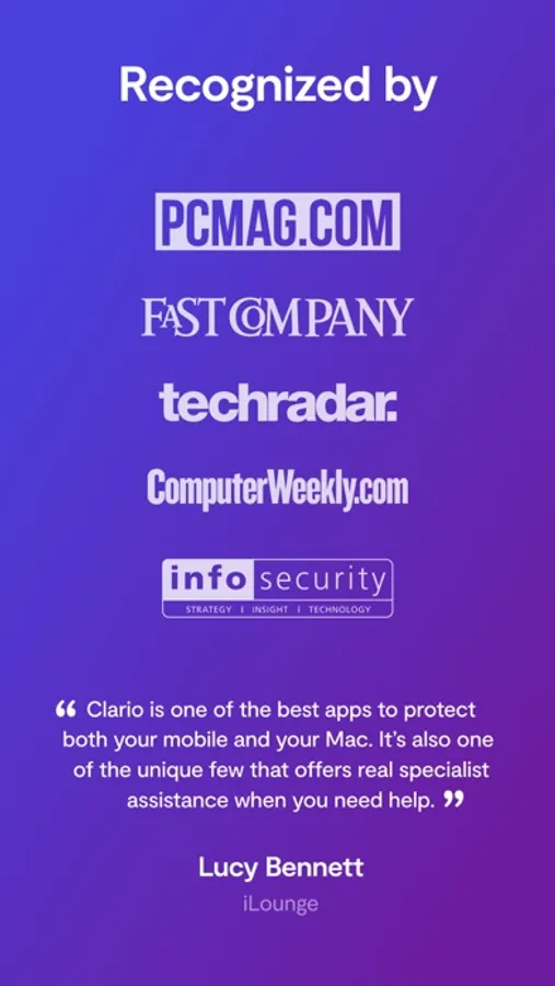 Unlike other apps that provide temporary security fixes, Clario brings you peace of mind every time you go online. Our pioneering tech works in synergy with digital security experts experts helps you live your digital life safely 24/7.