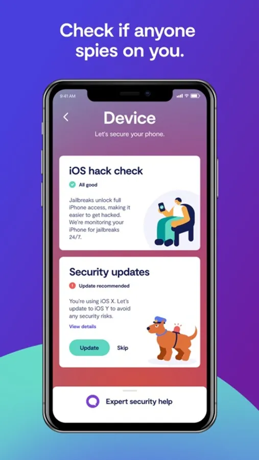 Clario’s mobile app ensures your security and privacy. It’s a simple yet powerful mobile security app, with integrated expert human assistance on-hand 24/7.