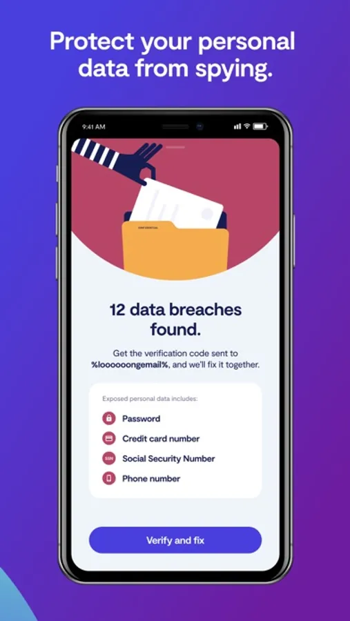 Monitor your email addresses for data breaches 24/7. We'll instantly alert you for leaks of your passwords, credit card number, phone number, or SSN. Re-secure your accounts to avoid ID theft.