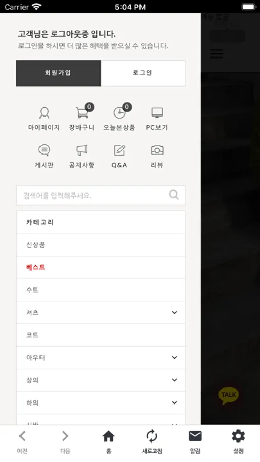 본 App은 웹사이트 쇼핑몰과 100% 연동되어 있어