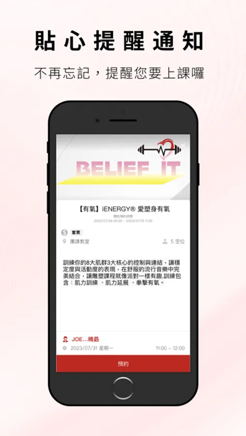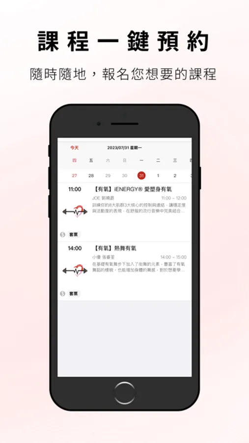 1. 查看課程 2. 進入課程預約頁 3. 按下預約,開心上課!