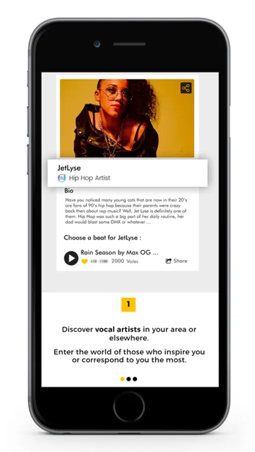 HITstory is a collaborative match-making platform for musical artists. In this mobile app, users will be able to discover talented vocal artists and assign instrumental music compositions to them. The combination (vocal artist + beat) with the most votes will then be produced and distributed on all traditional music platforms.