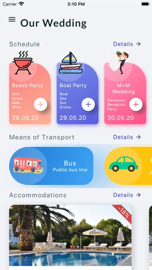 The customizable features of Our Wedding app include: