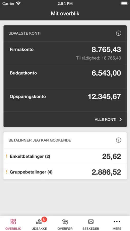 Merkur Mobilbank Erhverv giver dig overblik over virksomhedens konti, samt mulighed for at oprette og godkende betalinger på farten.