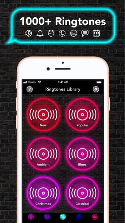 – Ringtones Library – includes more than 1000 unique music ringtones for any taste and mood, sorted into 32 categories with such music genres as: Classical, Electronic, Rock, etc;