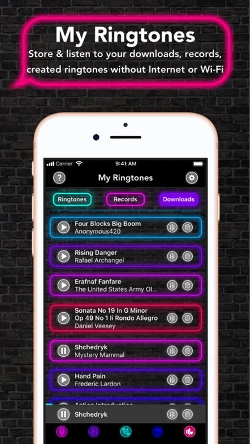– My Ringtones – edit your saved ringtones, records, text tones and alerts or listen to them without internet or wifi connection.