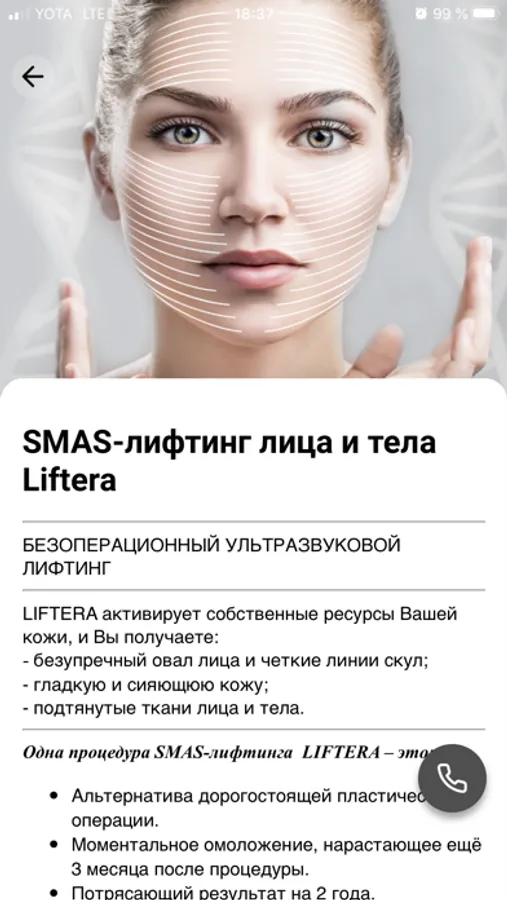 Мобильное приложение Skinerica отображает информацию об оказываемых услугах и специалистах