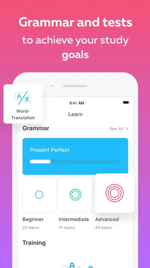 Native is not just an app to improve your vocabulary. You can learn grammar and train your listening, speaking, reading, and writing skills. Here is what exactly you get with Native: