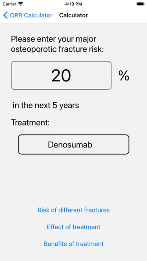 This calculator is designed to help doctors and other healthcare professionals to help you decide on whether to take drug treatment for osteoporosis, but you can use it yourself to assess the potential benefits of individual treatment in preventing fractures.