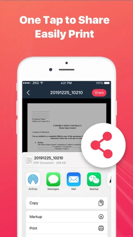- Share scanned files via WhatsApp, Email, fax, etc.