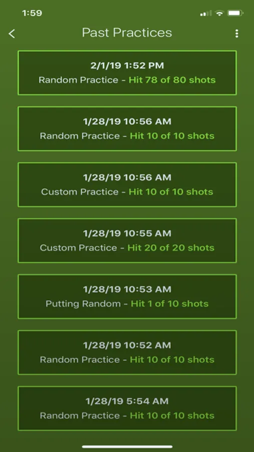 Golf benefits tremendously from random practice. Random practice is an effective way to sharpen your ability to execute on the course. Perfect Practice gives golfers the ability to get an honest random practice session in. In the random full swing mode, the app will issue distances that are within your ability based on the distances you entered in your profile when you set up your bag. Enter the outcome after each shot. The app will store the data so it can be viewed in your Profile under Clubs. Each practice session can also be viewed in a summary format on your mobile device, for quick reference of how well you performed at the end of your session. Random practice has a unique effect on the brain. It makes each shot more distinct from the next, which makes it more meaningful to the brain resulting in more elaborate memory representations. In other words, random practice on the range more easily translates to performance on the course.