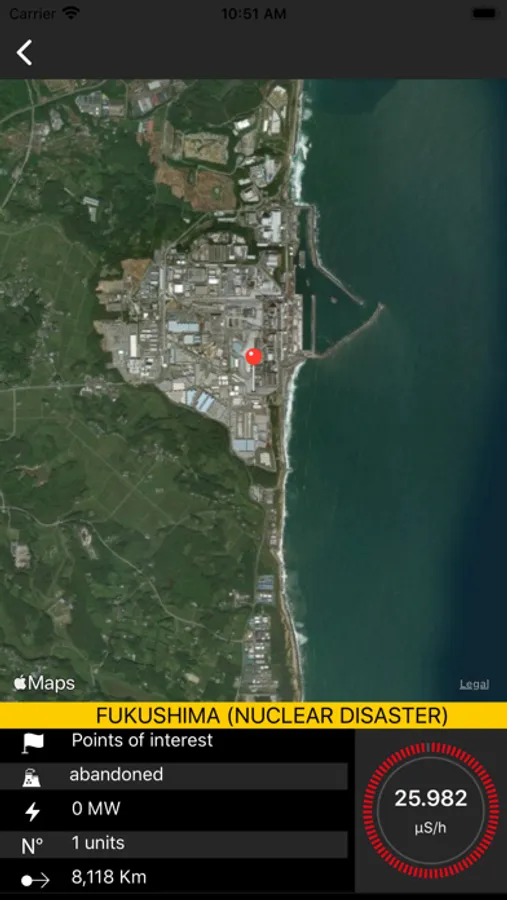 Through this app you can check the nuclear radiation of the place where you are. The application does not measure the radiation through the sensors of the device, but takes the information from our constantly updated database.
