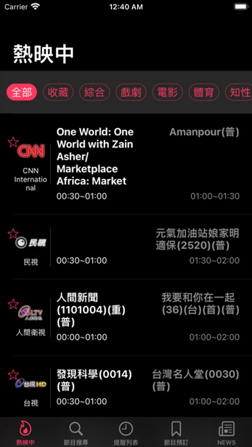 熱映中:即時電視節目播映查詢,即將播映電視節目查詢,喜愛的電視頻道加入收藏列表,讓您隨時快速查看。