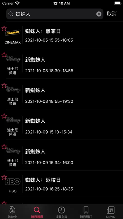 節目搜尋:讓您可以輸入電視節目、電影名稱關鍵字搜尋,快速找到播放時間。