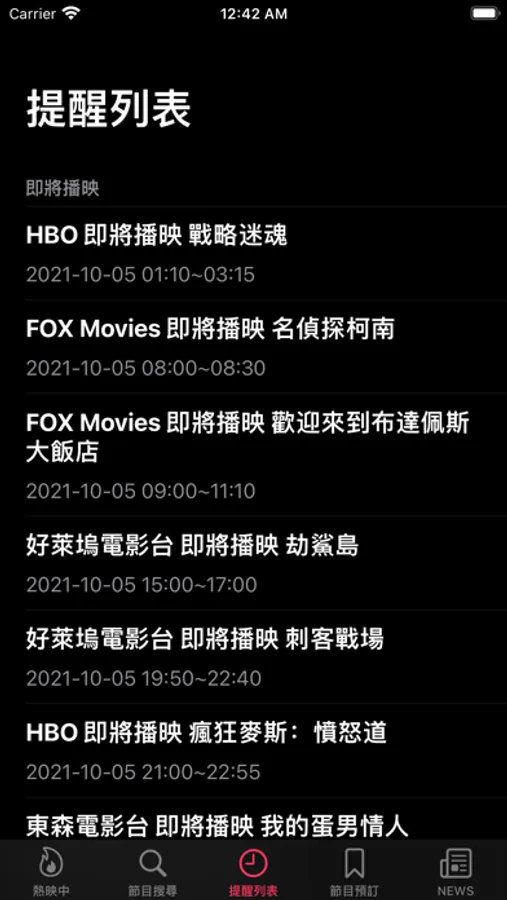 提醒列表:將喜愛的節目加入提醒,讓您不錯過任何一場電視節目。