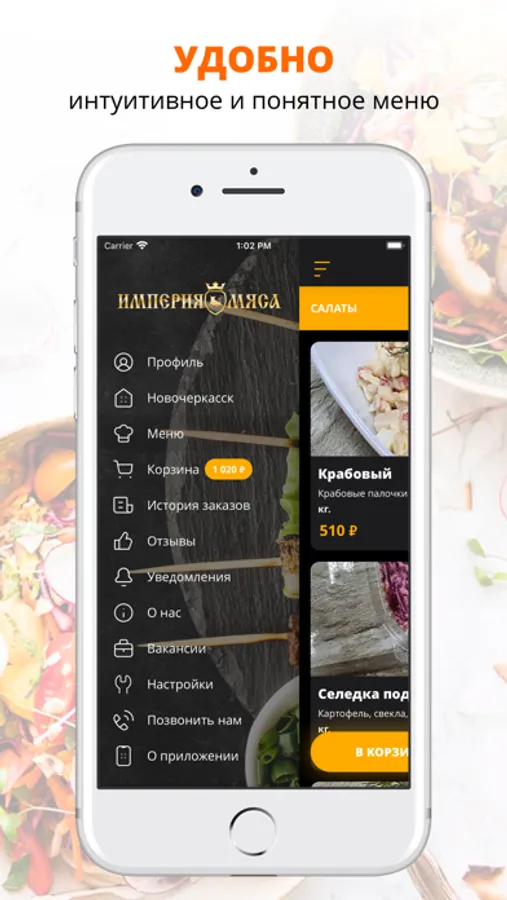 Быстрый заказ и доставка от свежего мяса до готового шашлыка по г. Новочеркасск. В нашем меню вы найдете свежее и маринованное мясо, большой выбор блюд на мангале. Шашлык из свинины, говядины, баранины, курицы, рыбы, люля - кебаб, овощи, грибы и многое другое. При приготовлении не используются полуфабрикаты, только свежие и качественные продукты. Доставкой отправляем свежеприготовленные блюда. Время приготовления шашлыка 20-30 мин, фастфуда 10-15 мин.