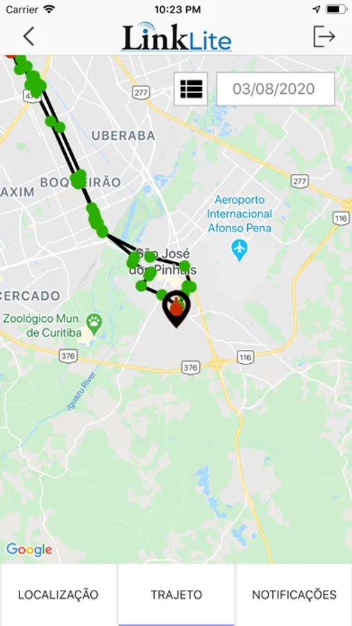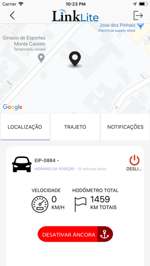 Nesta função você poderá ver a localização exata do seu veículo no Google Maps, bem como o hodômetro e status de ignição.