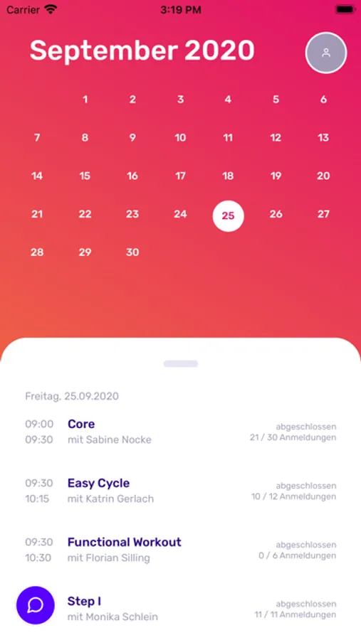 Markiere Anwesende mit nur wenigen Klicks und behalte stets den Überblick über die Teilnehmer der angebotenen Kurse deines Fitness-Clubs.