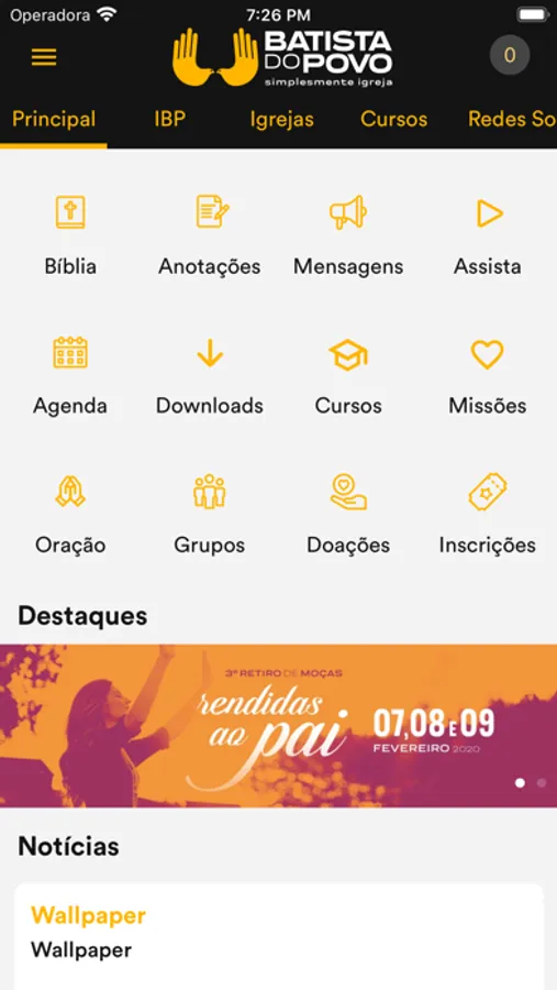 - E mais: notícias da igreja, guia de negócios, entre outros.