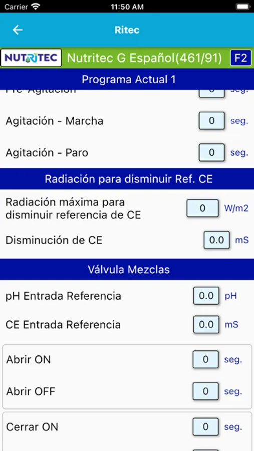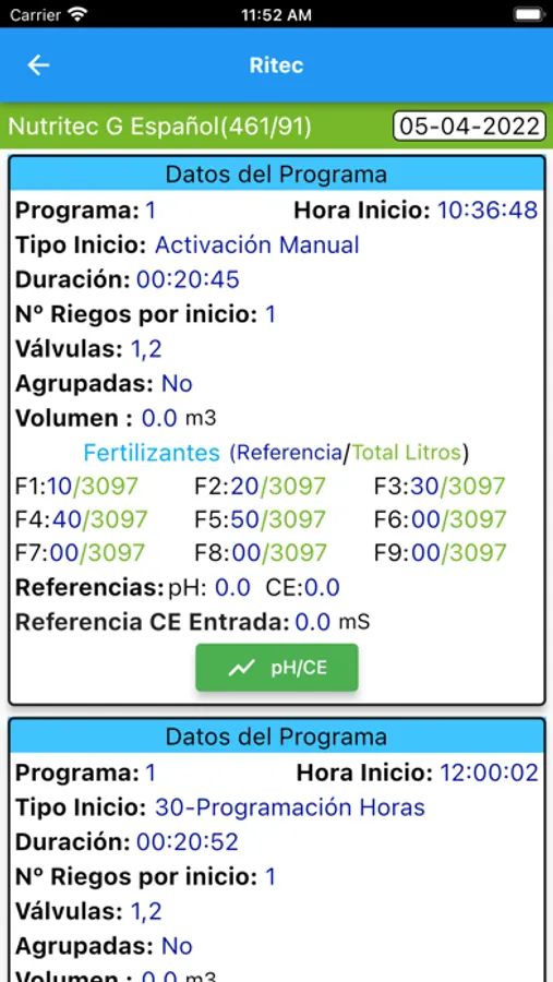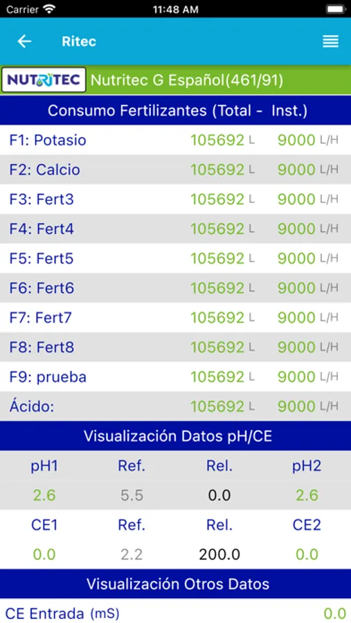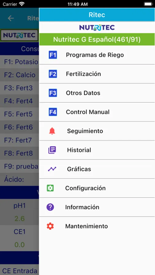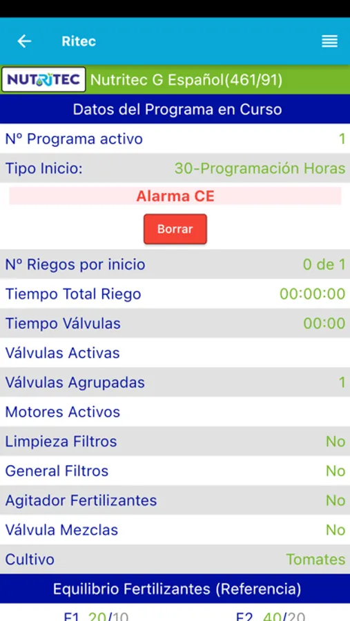 App para programación y control de equipos de fertirrigación Ritec instalados:
