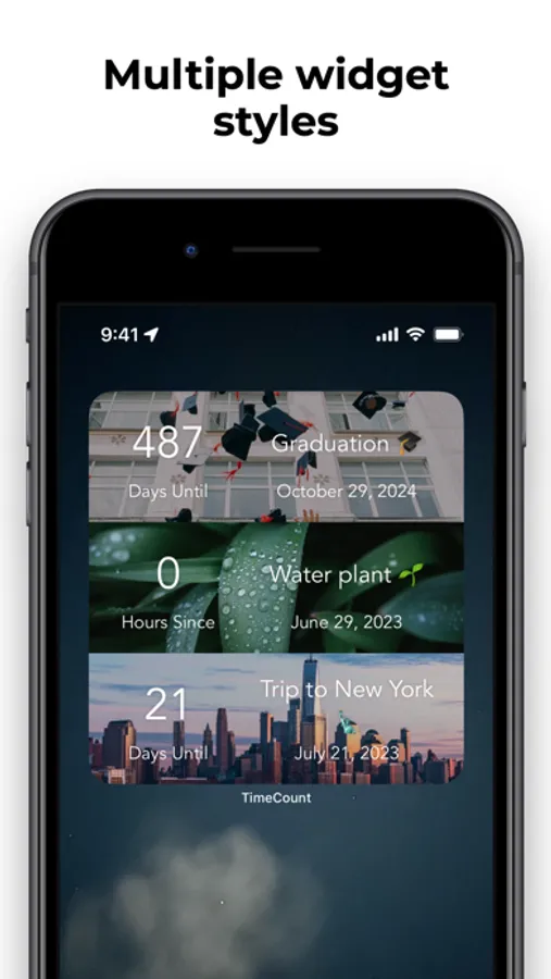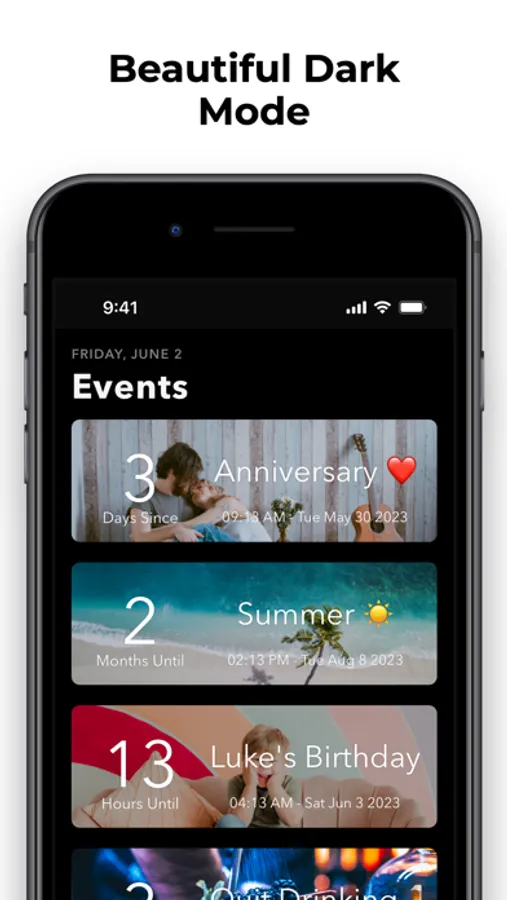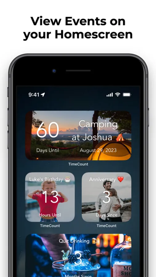 TimeCount is designed with care and attention. Enjoy subtle animations and beautiful imagery that make your countdown experience the best it can be.