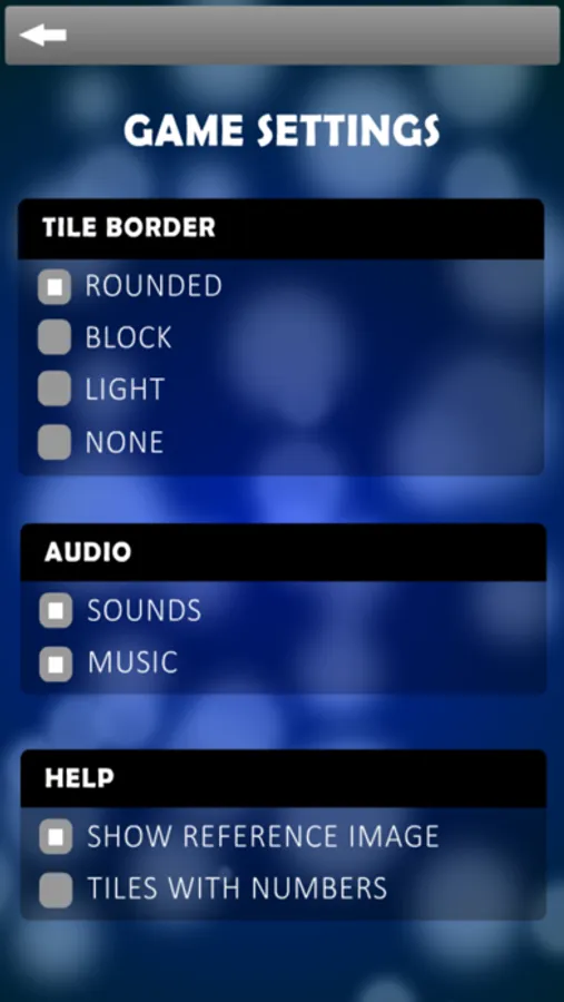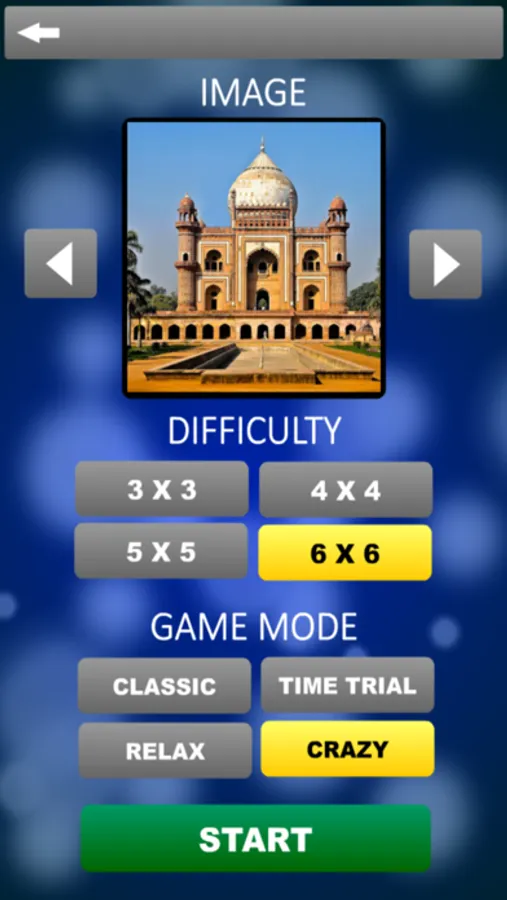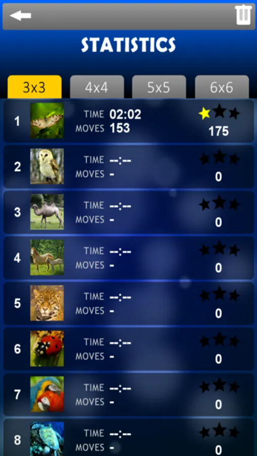 - 4 game sizes (3x3, 4x4, 5x5, 6x6)