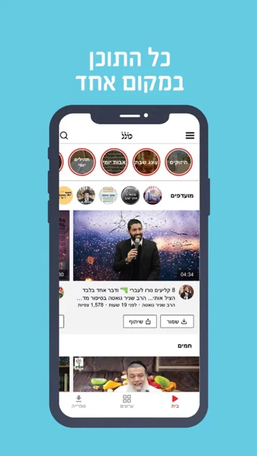 אפליקציית כולל מציעה את ספריית הוידאו הגדולה ביותר של שיעורי תורה, הלכה, מוסר והשקפה מטובי הרבנים, המרצים והארגונים בארץ ובעולם.