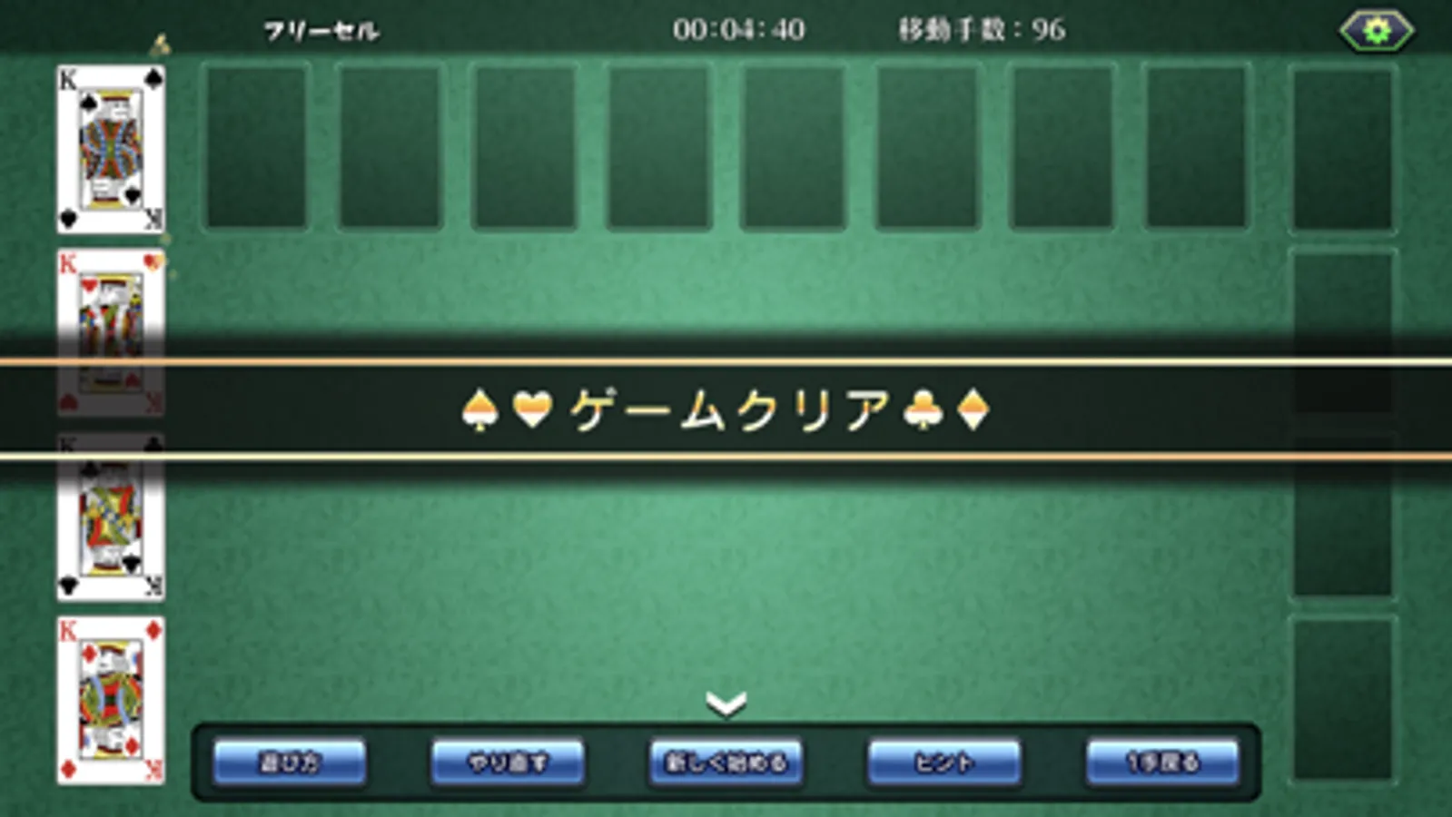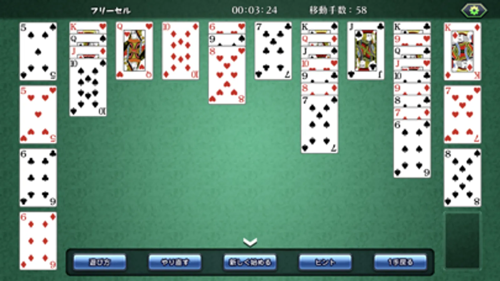 ・一度に移動できるカードはフリーセルや場の空き具合によって制限される