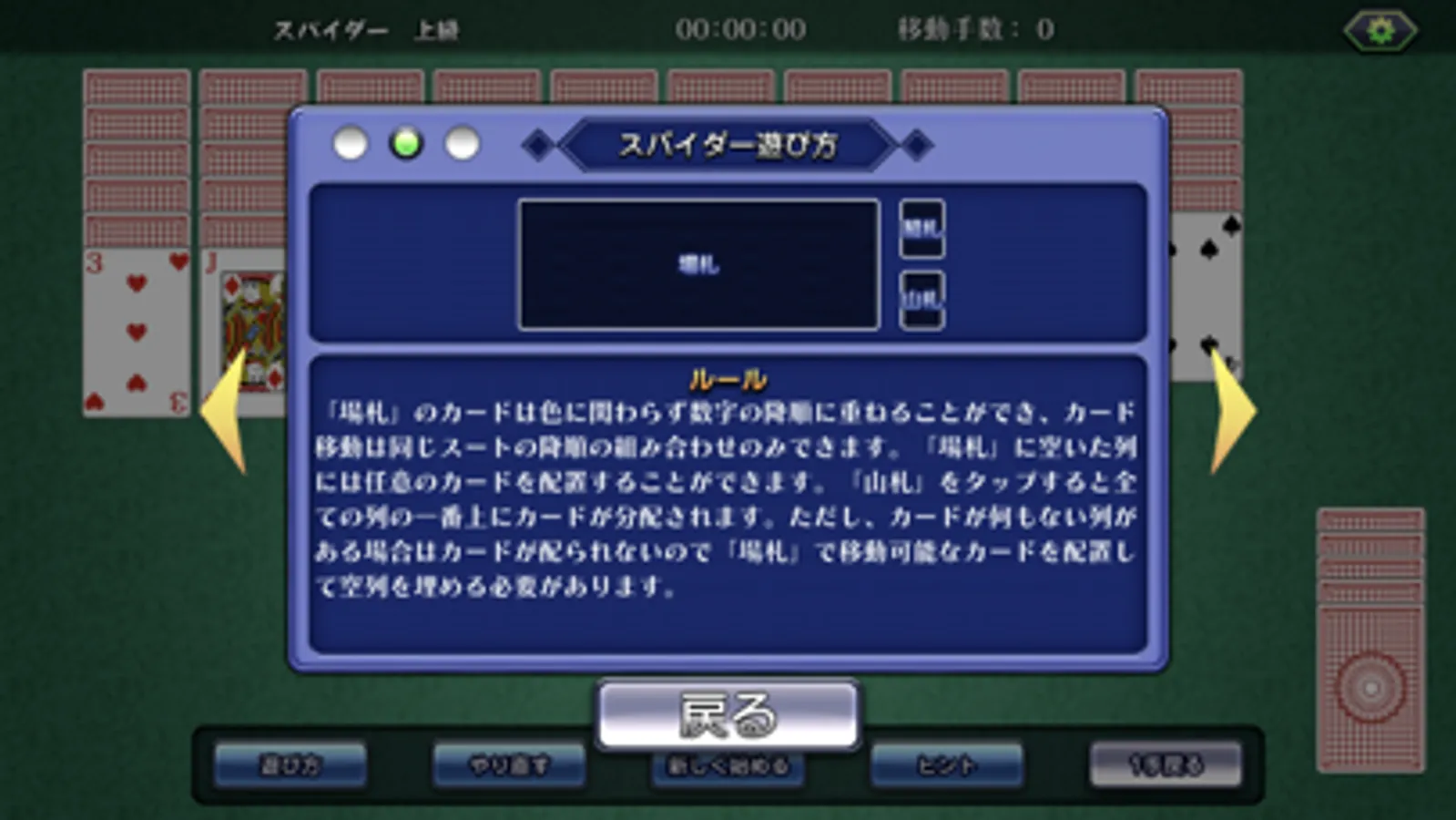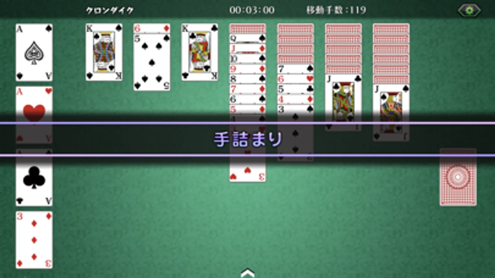 ・表向きで重ねられているカードをAからKまで順番に揃えるゲーム