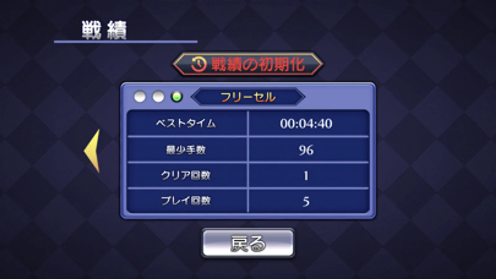 ・クリアまでのベストタイムや最小手数、プレイ回数やクリア回数を記録