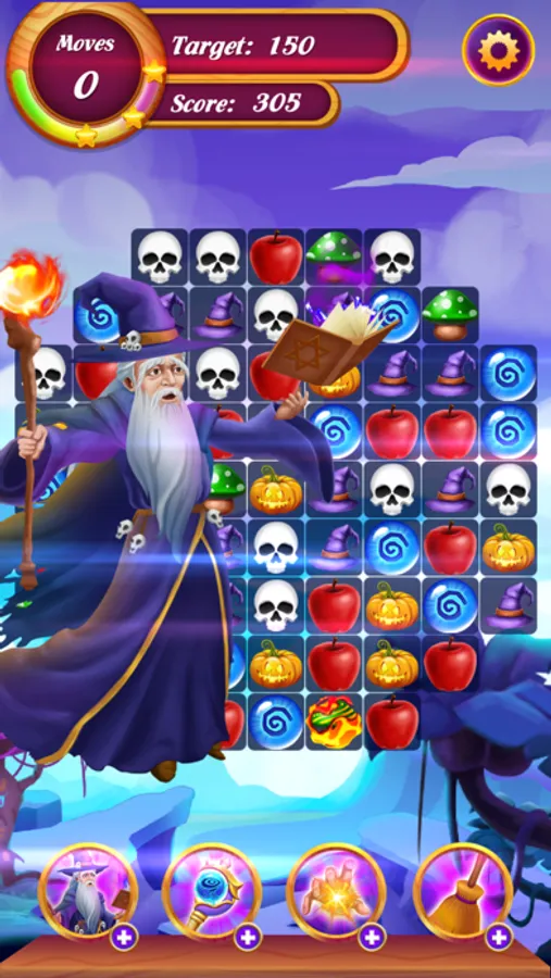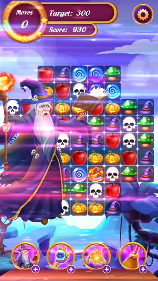 Use the right items in the Halloween shop like skulls, pumpkins, poison apples ... to clear the board