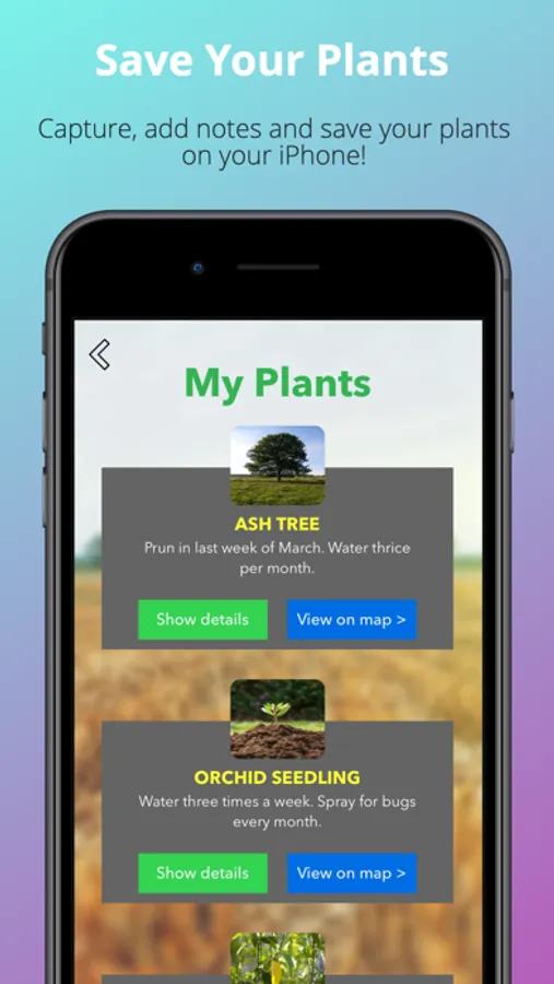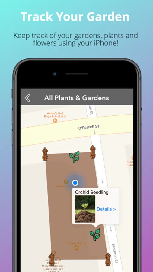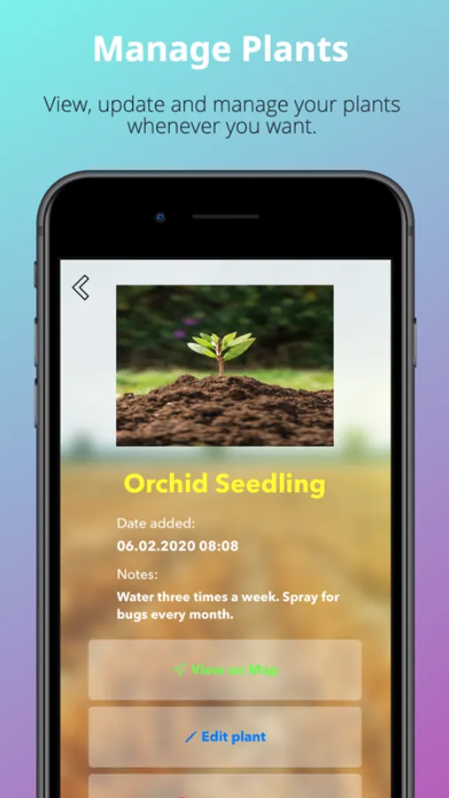 You can view all your saved plants & gardens on map and keep track of your gardening world easily. You can also manage and edit your plants and gardens whenever you want, such as you can retake photo of your plant as it grows up or add new plants to your existing garden.