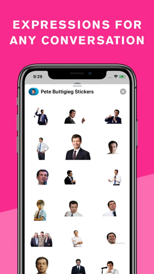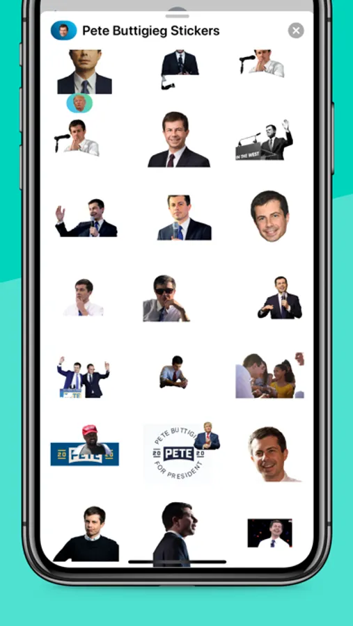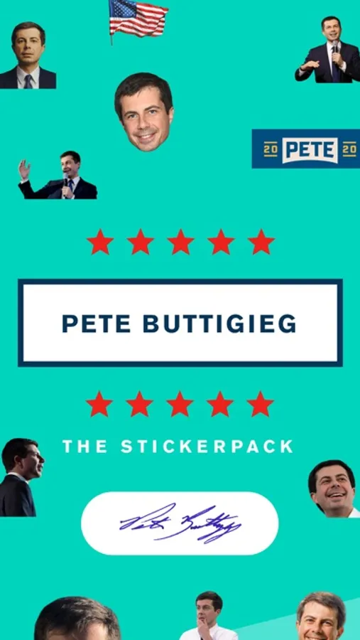 Pete Buttigieg Sticker Pack is an iMessage Sticker Pack providing over 60 premium stickers with faces, gifs, and expressions of Pete Buttigieg.