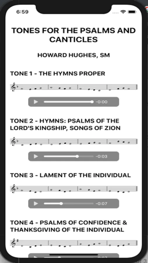 This app plays the Tones for the Psalms and Canticles by Howard Hughes, SM.