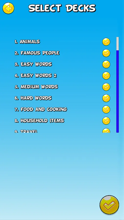 Select the decks you wish to play with, then enter the names of your teams. For each turn, a player from each team must describe the Catchphrase to the other members of their team, before pressing the correct answer button and passing the game over to the next team. If a team member accidentally uses any part of the Catchphrase, they must press the incorrect answer button. A leaderboard is shown at the end of each round, and at the end of the game.