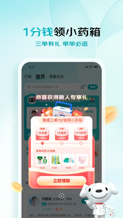 【京东家医】全科室医生团7×24小时随时问诊,一人买全家用,30天免费体验加速领红包