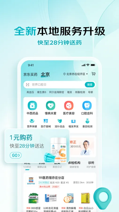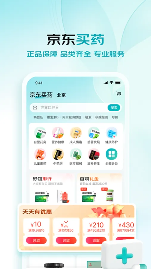 【京东买药】覆盖非处方药、医疗器械、保健品、滋补品、计生用品等健康正品好药商,依托京东物流高效、便捷送货到家