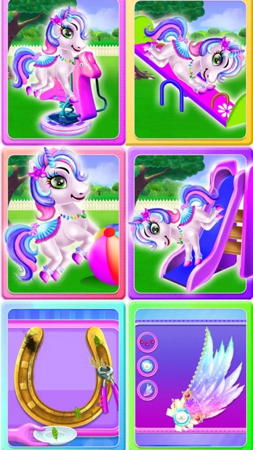 You can play with Pony on playground, be Pony doctor and help Pony to get well. Dress up your little friend with cute options... Unicorn dress up outfits and much more.