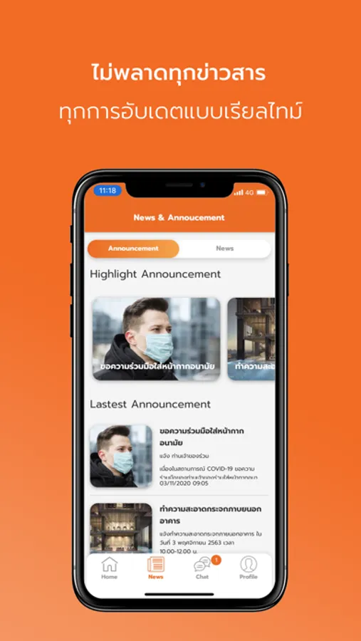 - News & Annoucement : แจ้งประกาศของโครงการและข่าวสารต่างๆ แบบเรียลไทม์ มั่นใจได้ว่าลูกบ้านจะไม่พลาดทุกข่าวสาร