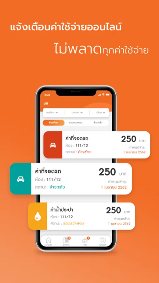 - Billing : เปลี่ยนเรื่องการจ่ายค่าน้ำ ค่าส่วนกลางให้เป็นเรื่องง่ายผ่านแอปพลิเคชั่น พร้อมรับการแจ้งเตือนค่าใช้จ่ายได้สะดวกที่สุด