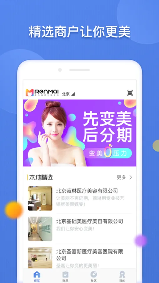 任买消费分期服务平台旨在为广大年轻消费群体提供消费分期信息服务,专注于城市信用消费的同时让每一位用户都拥有自己的城市VIP卡,给用户推介与众不同的分期消费体验,致力于为用户打造创新型,更优质的信用生活。