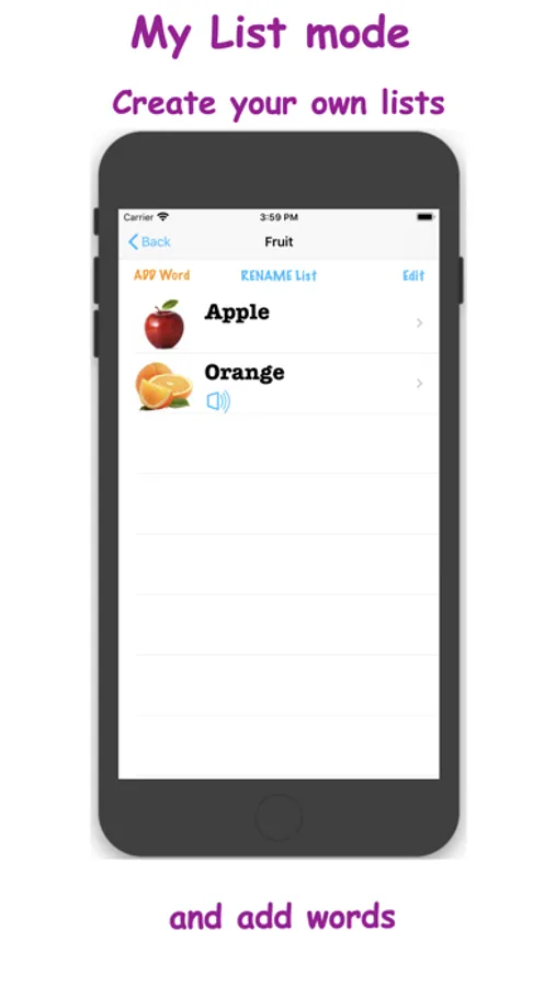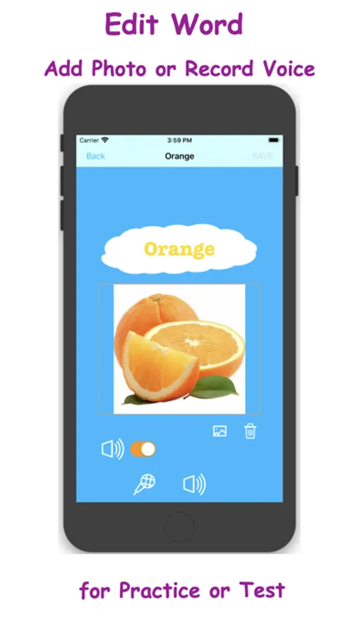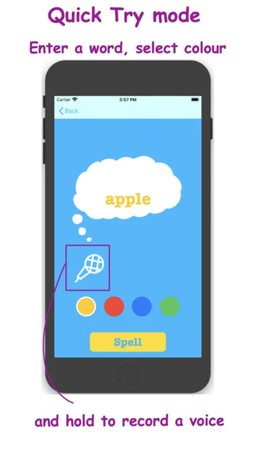 User can create different list of words and record their own voice for each words in the list, and then practice spelling with this voice.