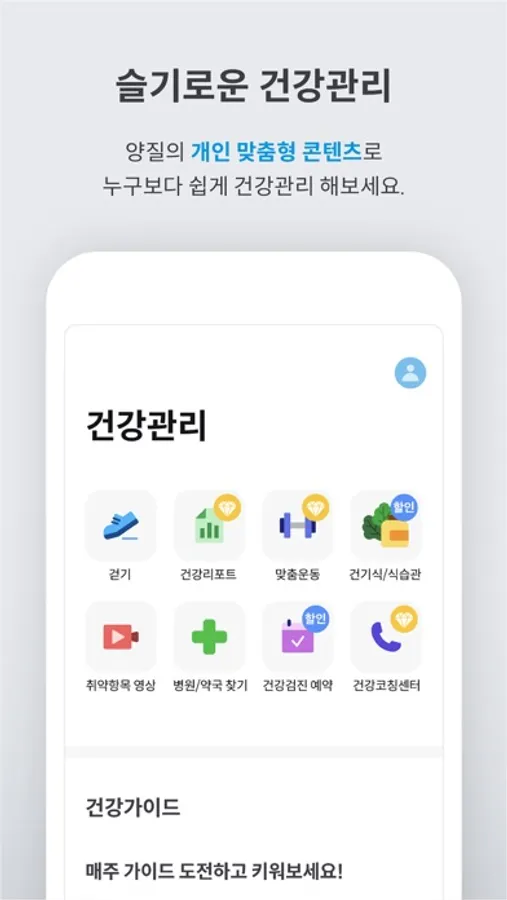 - 건강종합리포트 : 나의 건강을 스마트하게 분석해 현재 내 건강상태를 이해해보세요.