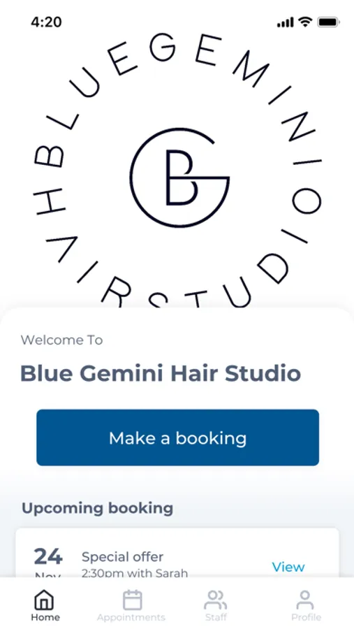 The Blue Gemini Hair Studio app makes booking your appointments and managing your loyalty points even easier. You're just a few taps away from feeling good and looking great!