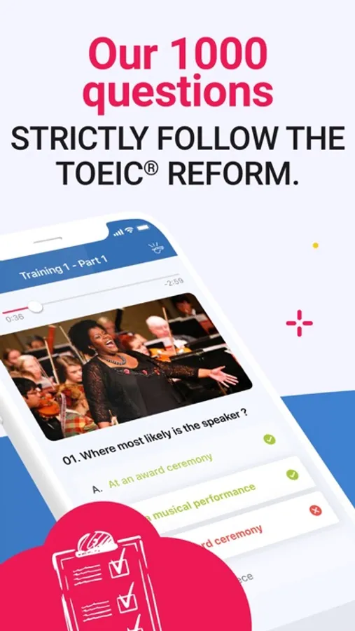 superTOEIC is an app made for everyone who wants to be ready for the TOEIC exam. Thanks to SuperTOEIC, you will obtain the highest score possible. Full TOEIC test features help you train in real conditions with a 2 hour timer to answer 200 questions and give you a score which assesses your level.