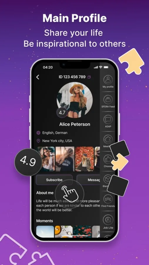 The "Main profile" serves for self-expression, receiving recognition, and self-realization. Speak about yourself and your activities, add photos. Publish original content and build connections with subscribers. Use "Main profile" as your personal blog and grow your audience.