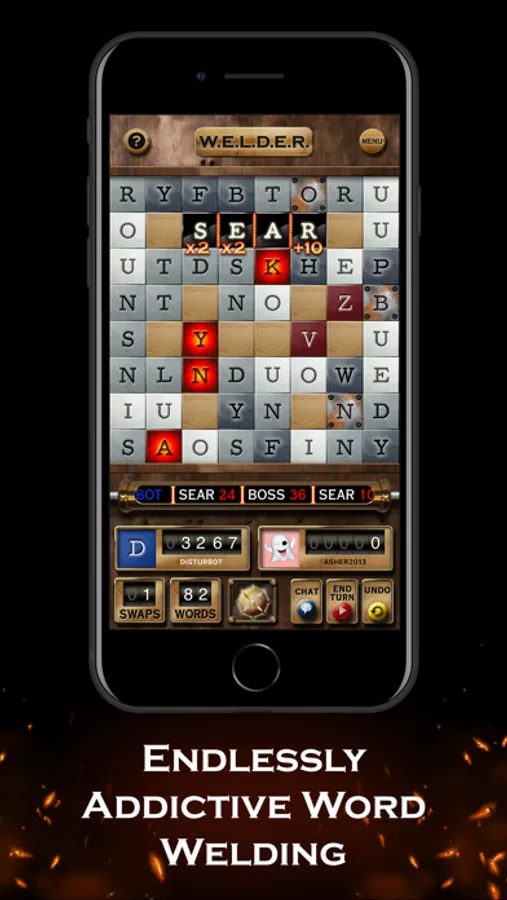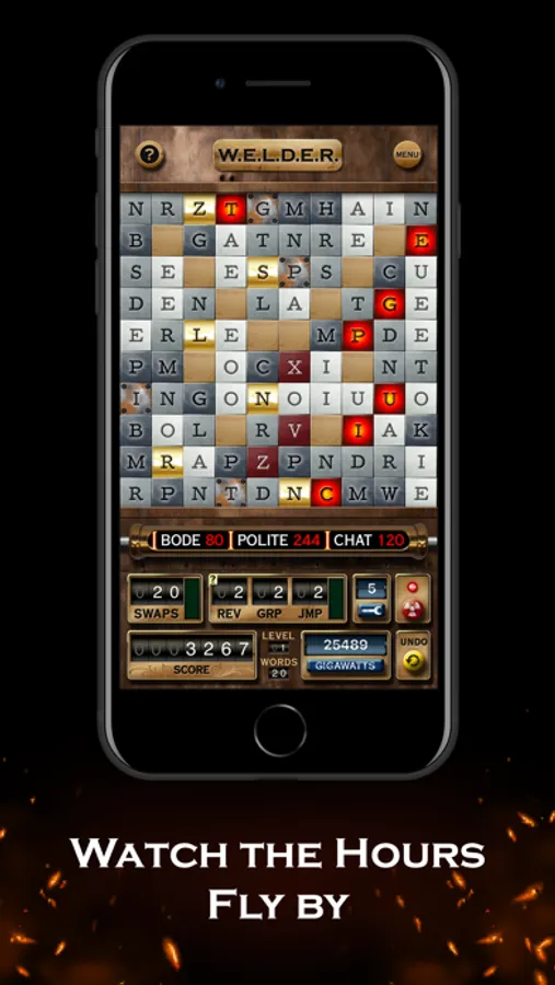 Weld words in the word machine! Create clever combos and multiply your score using gem and gold tiles.