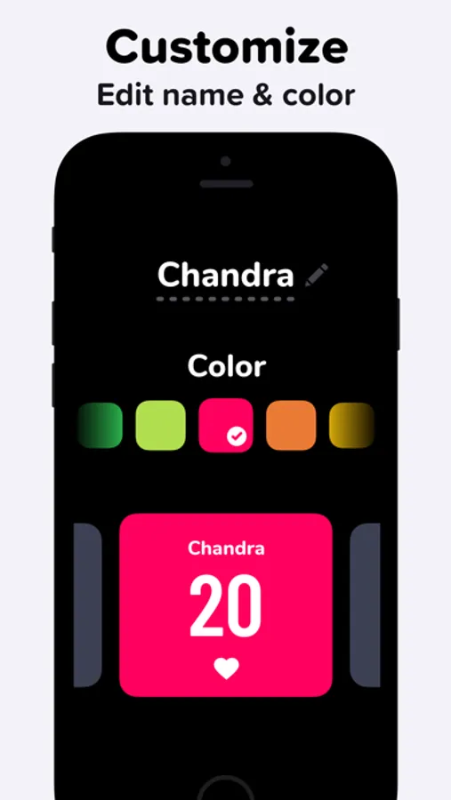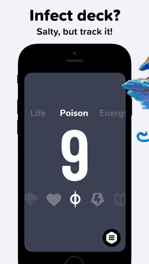 Lotus supports life tracking for up to 6 players in the app. Supports custom starting health. You can choose a name and color for every player. Additionally to life tracking, Lotus also supports tracking Poison, Energy, Storm, and Experience counters.